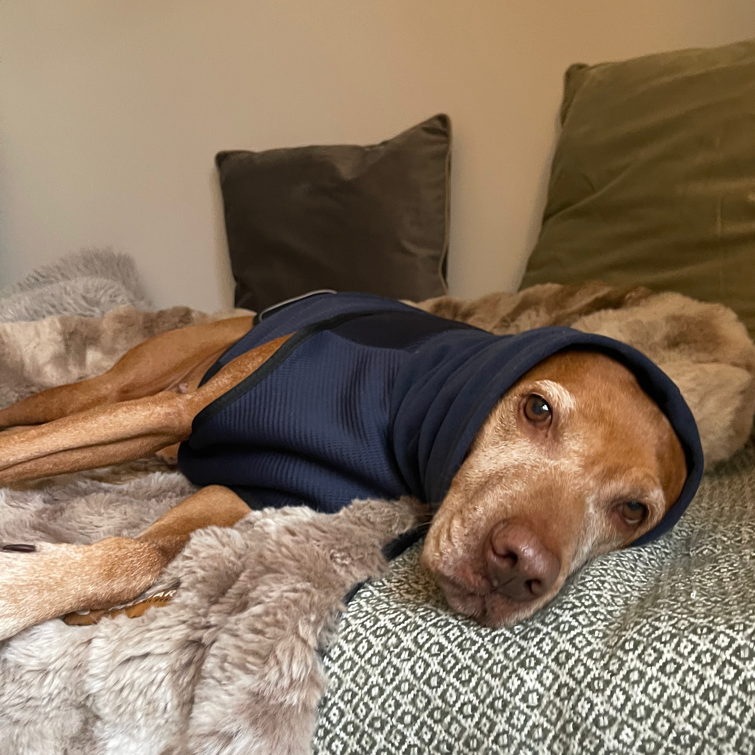 Mein Tierarzt hat uns damals den Mantel für Aivy bei Angstmomenten empfohlen. Aivy liebt den Wuff-Relax-Mantel 💕 und kommt damit perfekt in Ruhe.