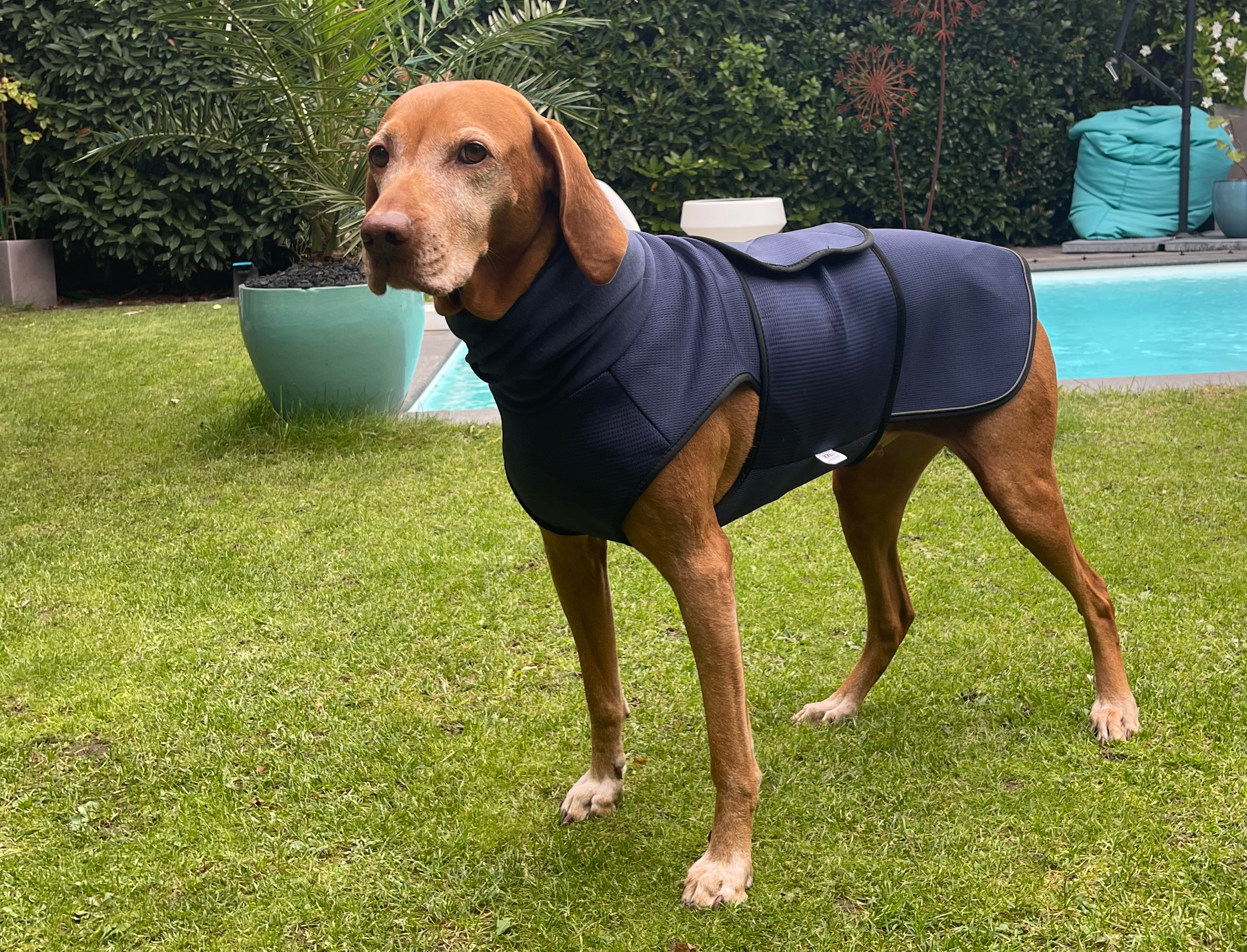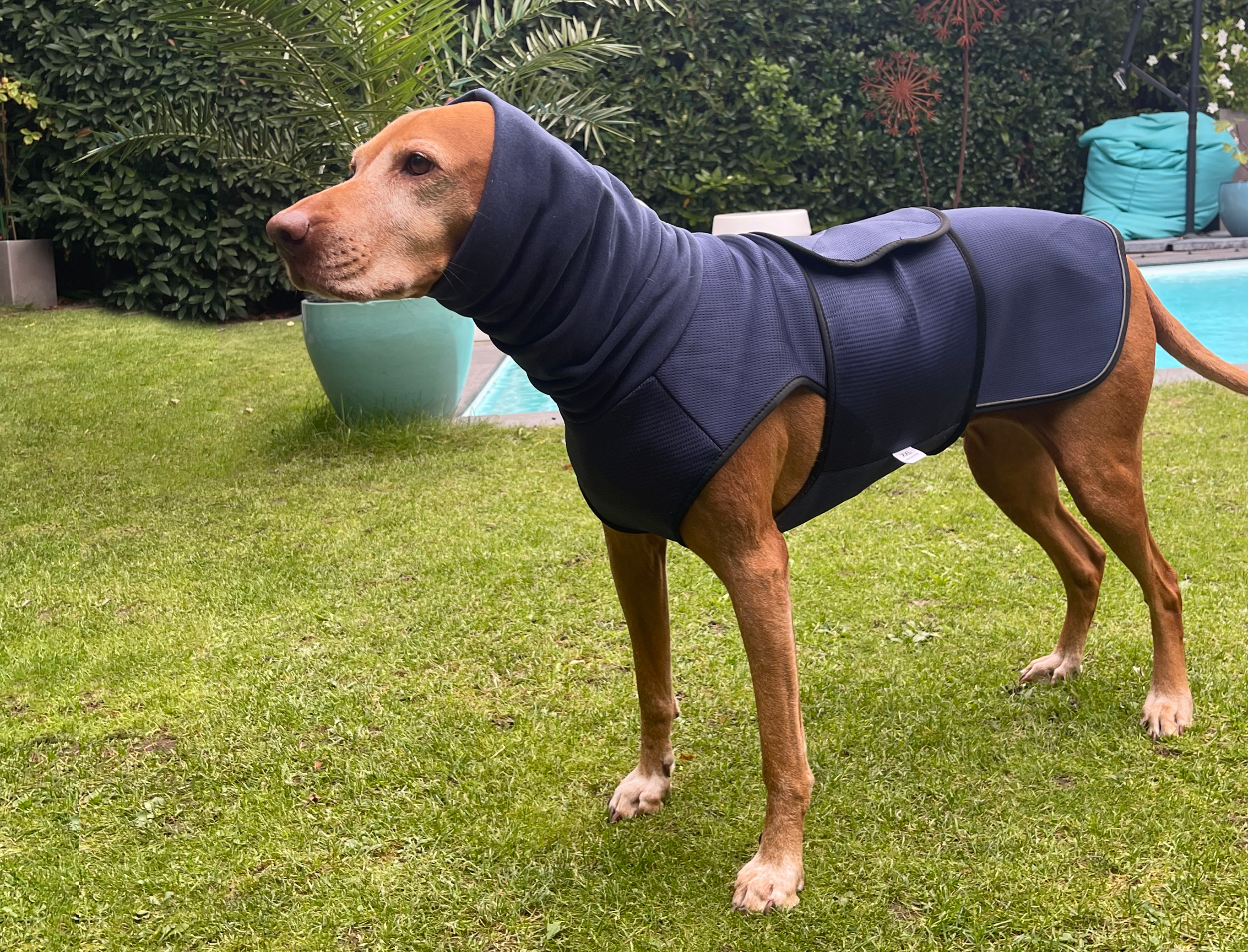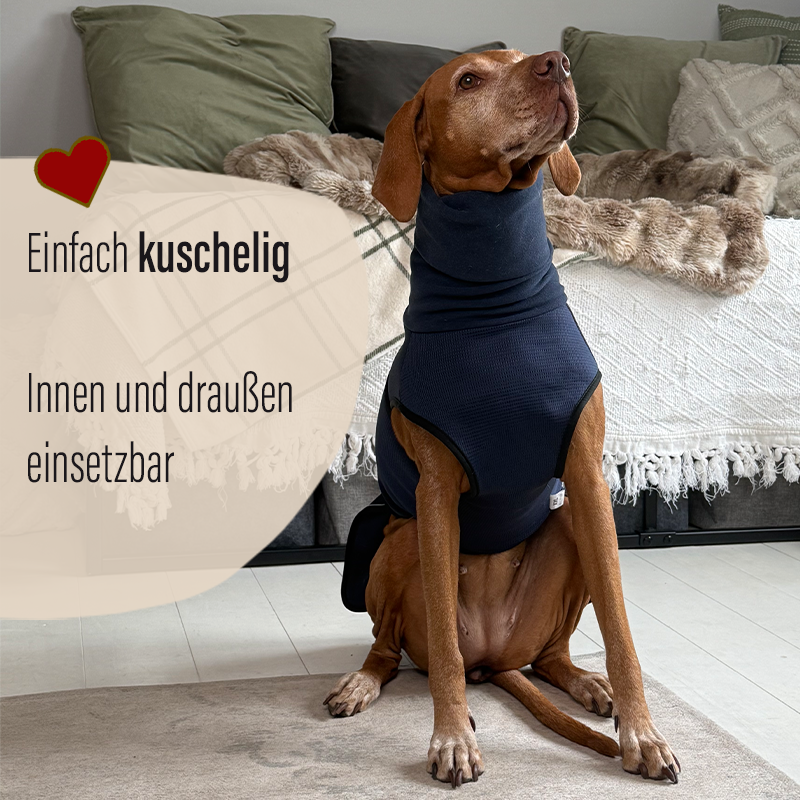 Den Relax-Mantel kann man bis Zimmertemperatur gut verwenden. In der Sommerhitze sollte man ihn nicht anziehen. Achte grundsätzlich immer darauf, dass dein Hund sich wohlfühlt!