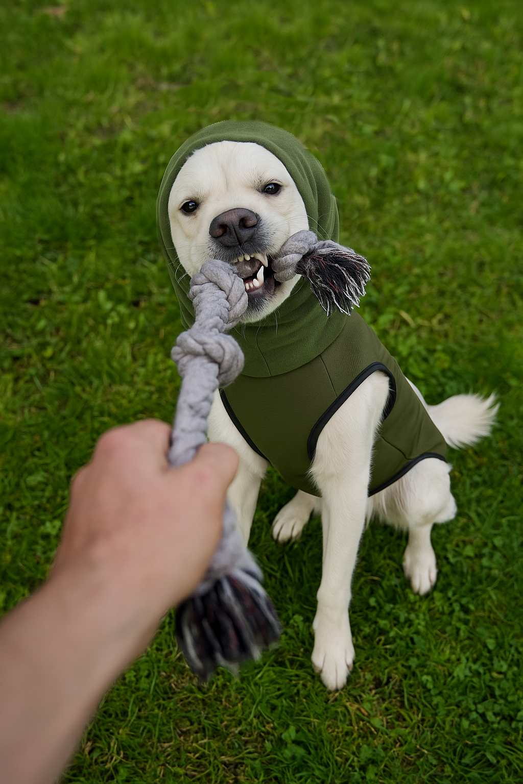 So kann ich draußen spielen, ohne ständige Schreckattacken. Die Weste hat uns wirklich enorm geholfen, das Fin ruhiger und weniger schreckhaft ist. 🤝 Danke für das gute Stück!!!
